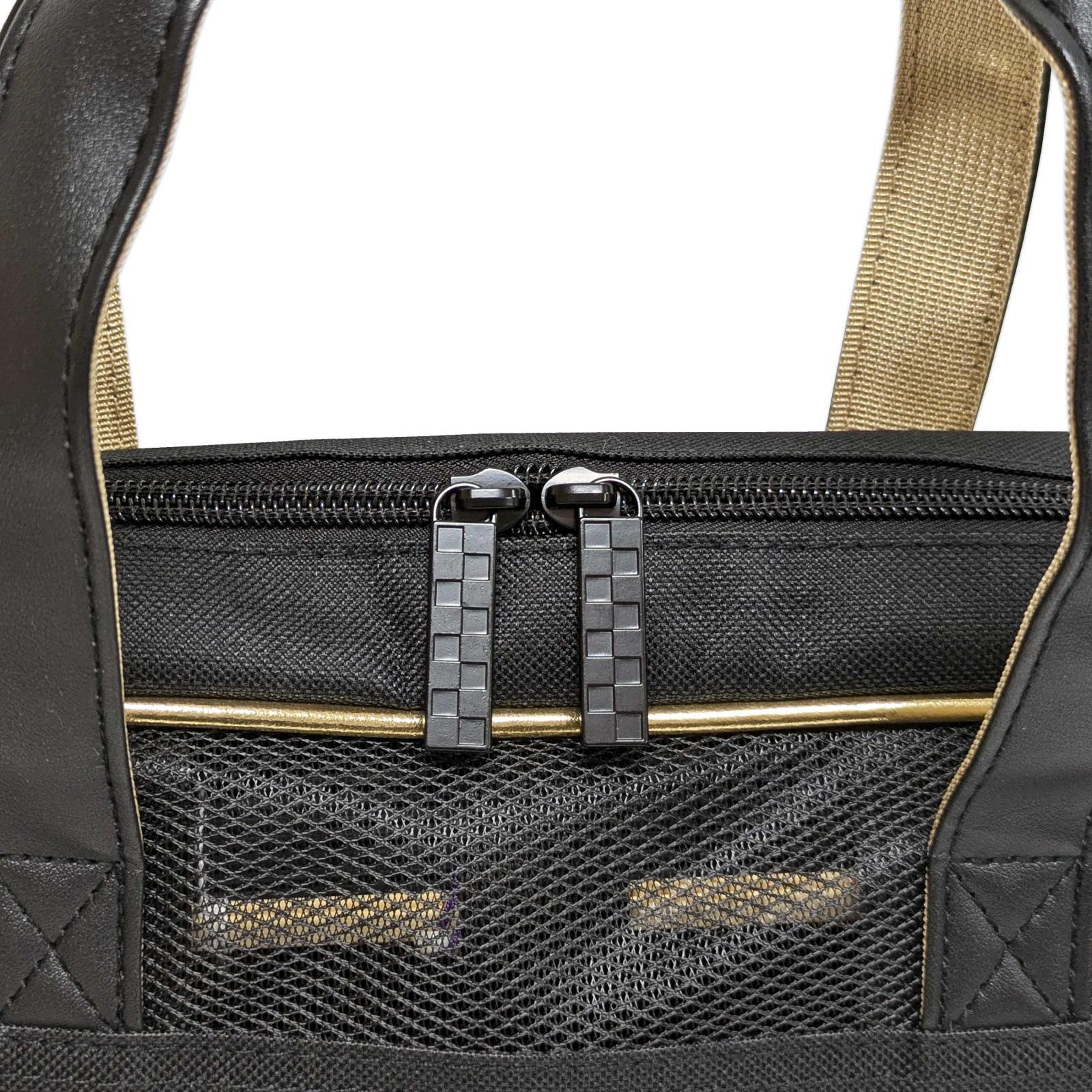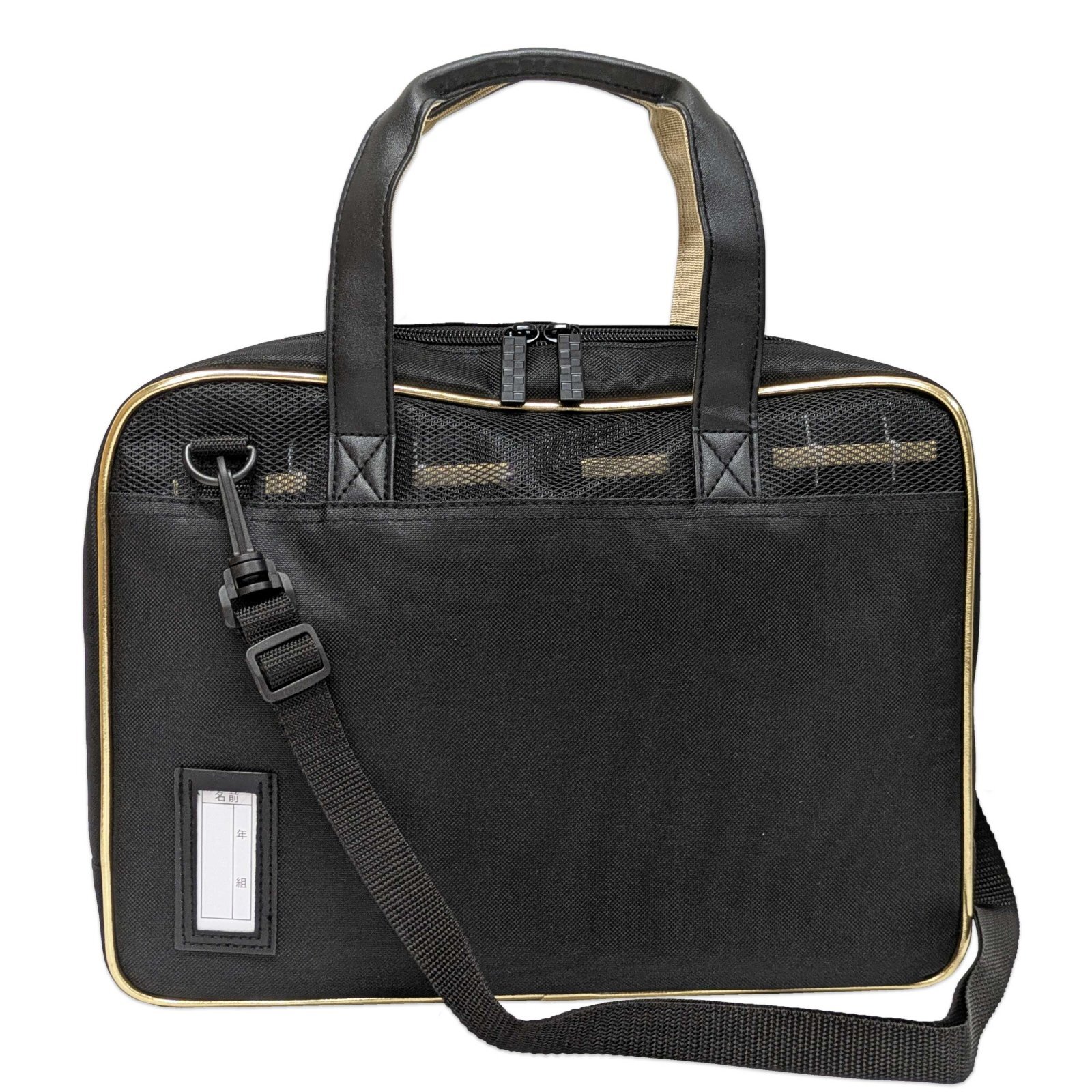 授業で必要な道具が揃った書道セット 今なら汚れ拭きに使えるタオルふきんプレゼント! 黒地に、ブルーのファスナーと ブルーの2本のラインが目を引く習字バッグ。 バッグの外側に、中皿と墨…