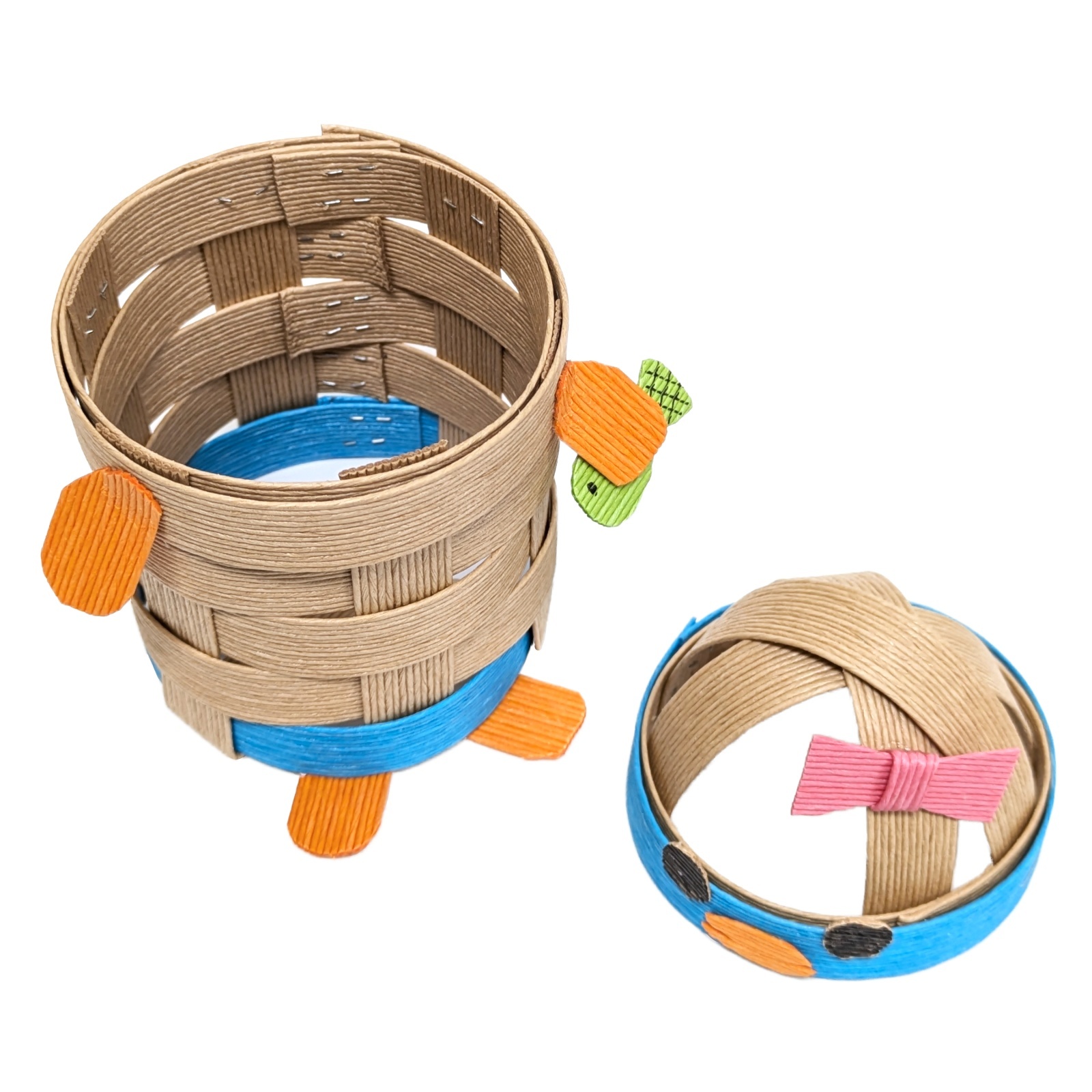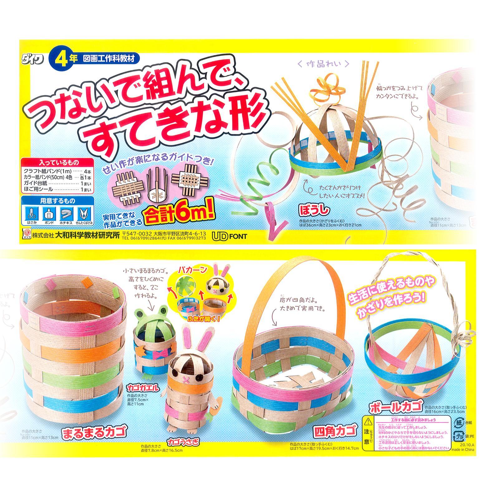 クラフトバンドを使って小物入れやカゴ、帽子などが作れるキットです。